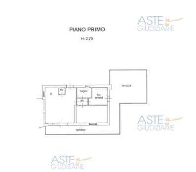 Lotto 2: Appartamento al piano primo, composto al suo interno da soggiorno con angolo cottura, disimpegno, camera, bagno, uno studio e terrazza. Il tutto di 71,40 mq commerciali.