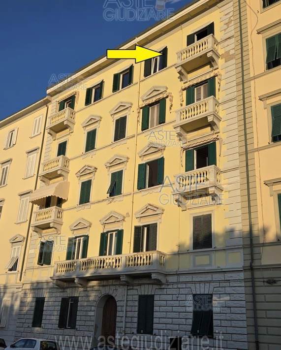Nel comune di Livorno, Viale Italia 23, si trova in vendita IN ASTA un appartamento al piano quarto facente parte di un più ampio fabbricato, composto al suo interno da ingresso, soggiorno, cucina, due bagni, disimpegno, due camere entrambe con cabina armadio e due balconi.