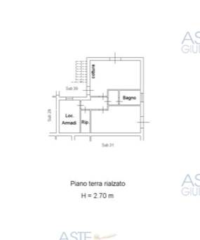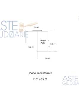 Lotto 2:Appartamento al piano terra rialzato, composto da ingresso, soggiorno-pranzo con angolo cottura, disimpegno, camera, ripostiglio, anti bagno e bagno, oltre a posto auto di 13 mq al piano seminterrato, il tutto di 60,50 mq commerciali.