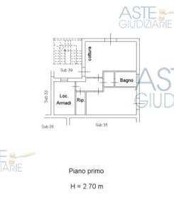 Lotto 4:Appartamento al piano primo, composto da ingresso, soggiorno-pranzo con angolo cottura, disimpegno, camera, locale armadi, ripostiglio, anti bagno e bagno, oltre a posto auto di 13 mq al piano seminterrato, il tutto di 66,80 mq commerciali.