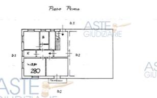 Lotto 7: Appartamento al piano primo, composto al suo interno da ingresso-soggiorno, cucinotto, disimpegno, tre camere, bagno. Il tutto di 97 mq commerciali.