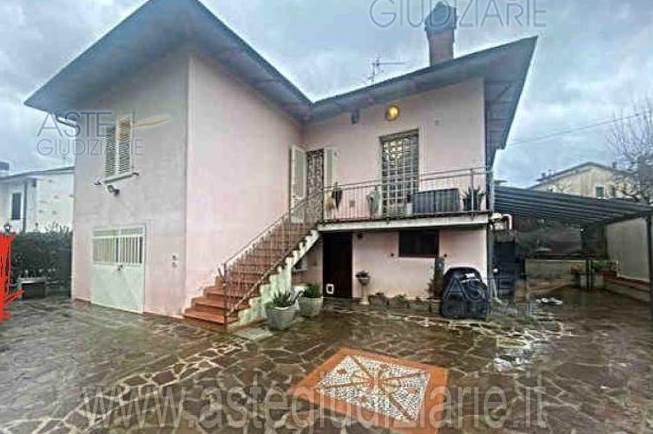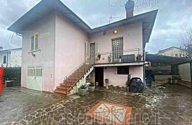 Nel comune di Montopoli in Val d'Arno, località San Romano, via Puglia 26, si trova in vendita IN ASTA un Porzione di casa per civile abitazione, disposta su due piani, composta al suo interno al piano primo da ingresso-soggiorno-cucina, due camere di cui una con cabina armadio, disimpegno, bagno e terrazzo con annessi due locali di sgombero, bagno, locale caldaia e autorimessa al piano terra, oltre a cortile esclusivo.