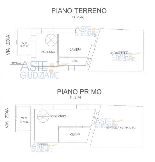 Nel comune di Rio nell'Elba, via Zoia 26, si trova in vendita IN ASTA un appartamento per civile abitazione disposto su due piani, facente parte di un più ampio fabbricato, composto al piano terreno da ingresso, disimpegno, camera e bagno, al piano primo, a cui si accede mediante scala interna, da soggiorno, cucina e bagno.
