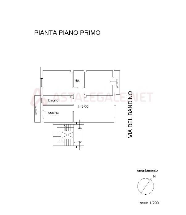 Nel comune di Firenze, Via del Bandino, 8, si trova in vendita IN ASTA un appartamento ubicato al piano primo, composto di quattro vani, ovvero da un ingresso-soggiorno, cucina-pranzo, due camere, un bagno, disimpegno, ripostiglio e due balconi.